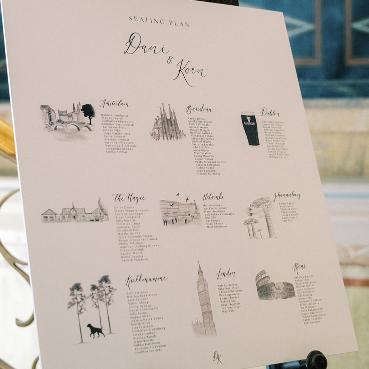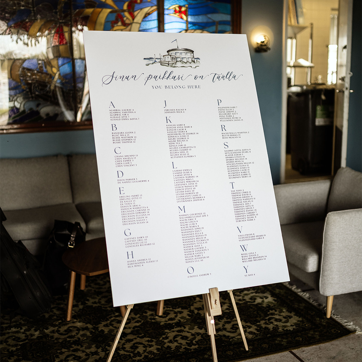 Istumajärjestys on yksi juhlan käytännöllisimmistä paperituotteista, mutta se voi olla samalla myös näyttävä osa somistusta. Se ohjaa vieraat vaivattomasti omille paikoilleen ja luo samalla kauniin katseenvangitsijan juhlatilaan.